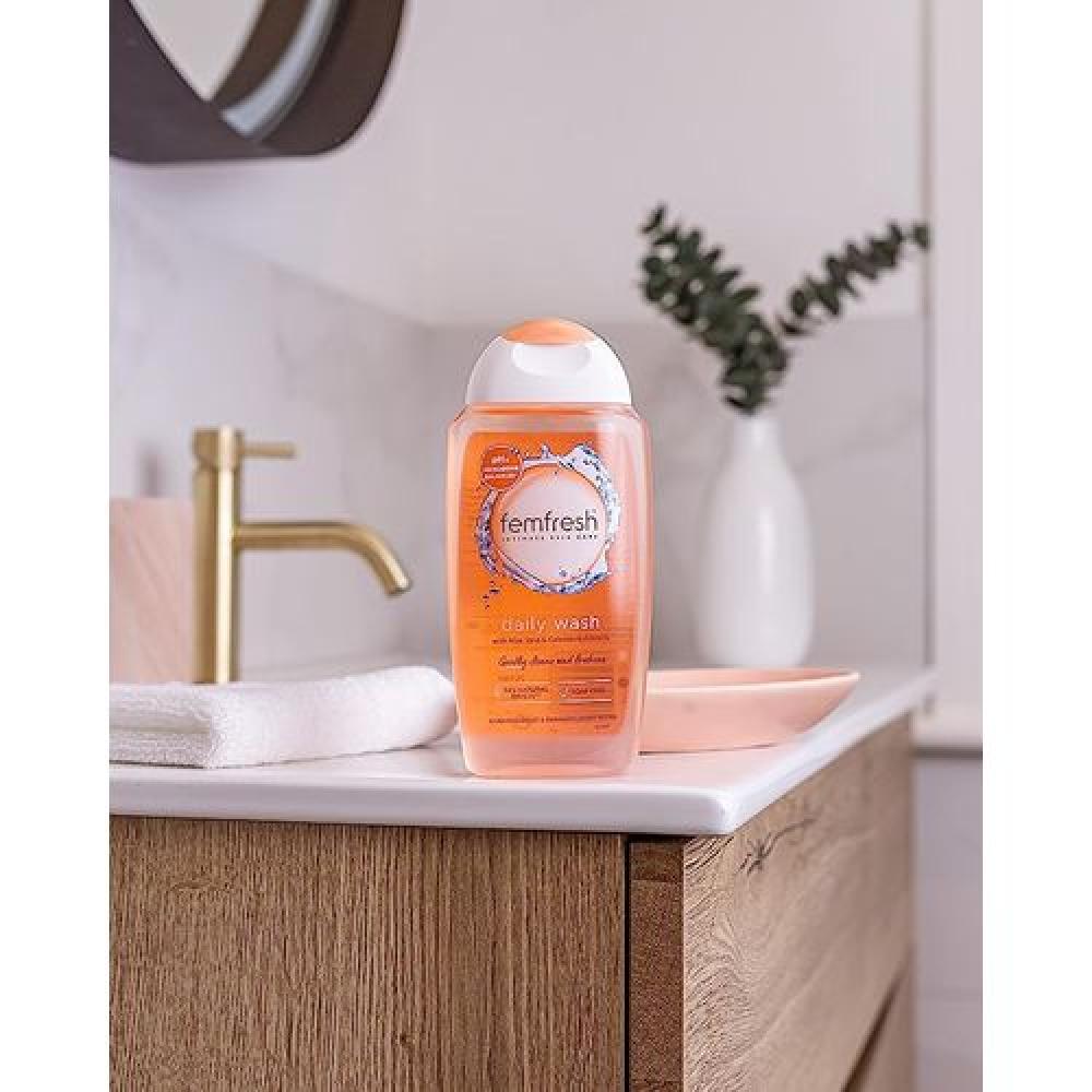 غسول فيم فريش اليومي هو الحل الأمثل للعناية بالمنطقة الحساسة. تركيبته اللطيفة بتركيز متوازن من الـ pH (4.3) تساعد على تنظيف البشرة بعمق مع الحفاظ على توازنها الطبيعي. غني بمستخلص الألوفيرا وبتلات الآذريون لتهدئة البشرة ومنحها شعوراً بالانتعاش يدوم طوال اليوم.
