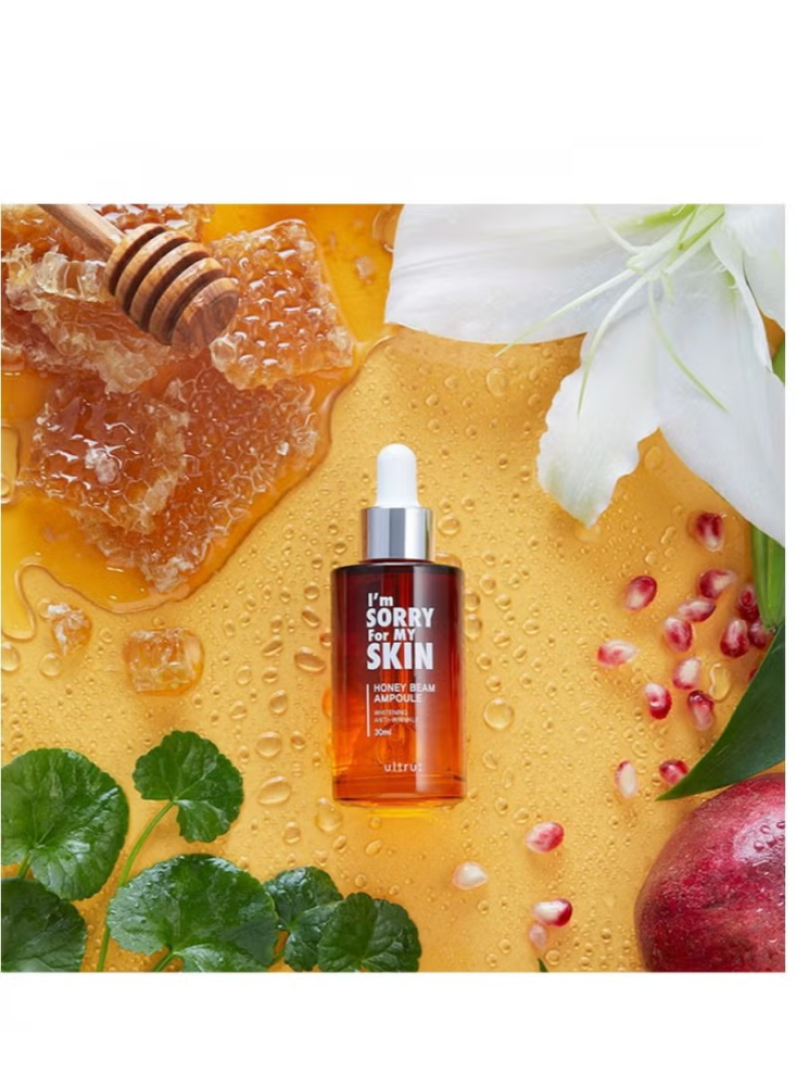 دللي بشرتك مع I’m Sorry For My Skin Honey Serum الغني بمركب Honey Complex™ الذي يحتوي على العسل، البروبوليس (العكبر)، والهلام الملكي. تركيبة فاخرة تعمل على ترطيب البشرة بعمق، تغذيتها بالعناصر الأساسية، ومنحها إشراقة صحية طبيعية.